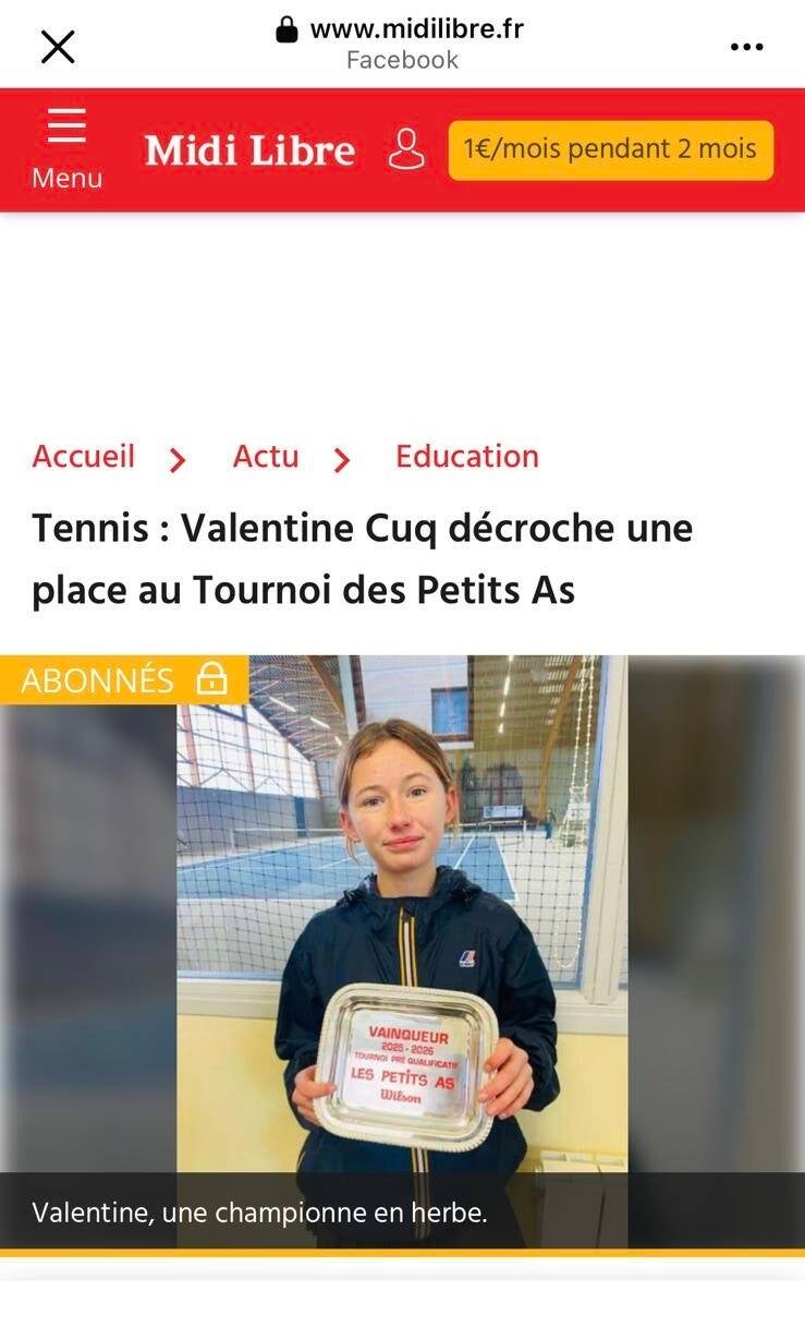 Page pour soutenir le tennis féminin et favoriser le développement de Valentine,